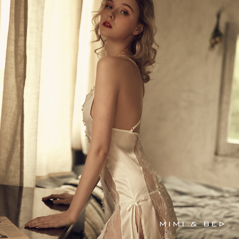 - 立體水溶蕾絲裝點 沿身體曲線蜿蜒向下