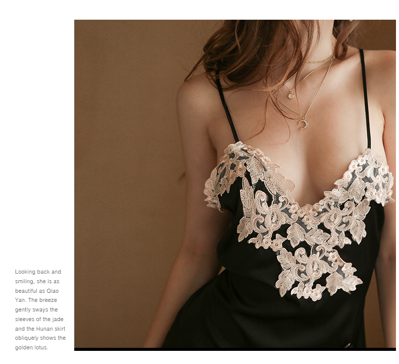 - 如旗袍般開叉 閃光絲線藏匿于蕾絲之中