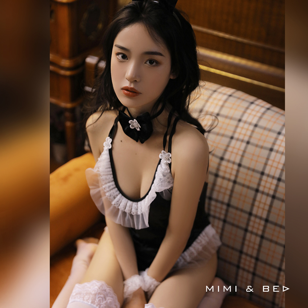 被窩的秘密 雪花絲絨兔女郎角色扮演服。黑色
