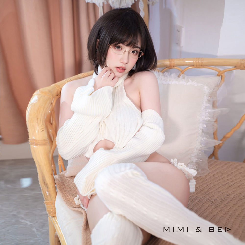 【NEW】宅男秒殺の二次元性感挖空美背繫帶毛衣組。白色 MIMIBED