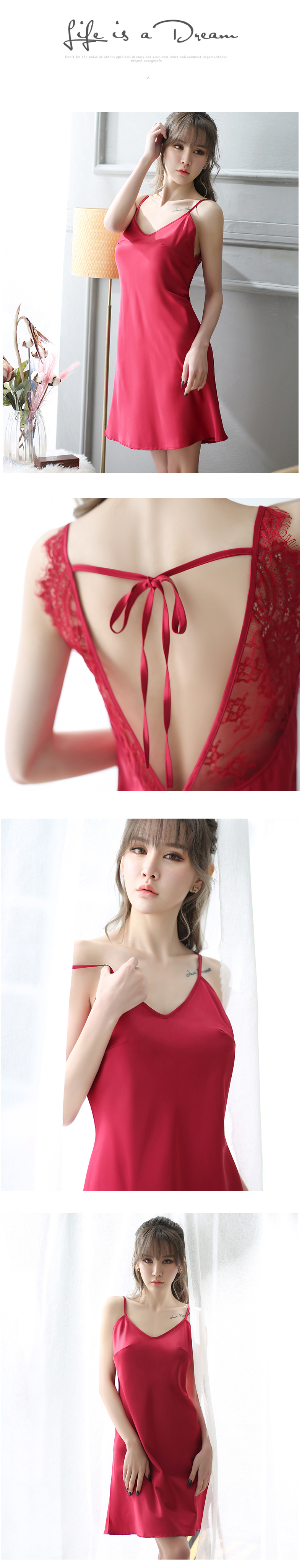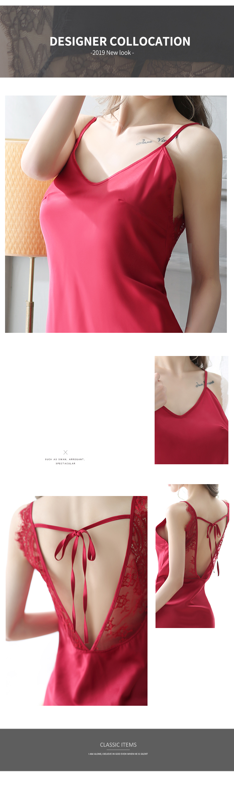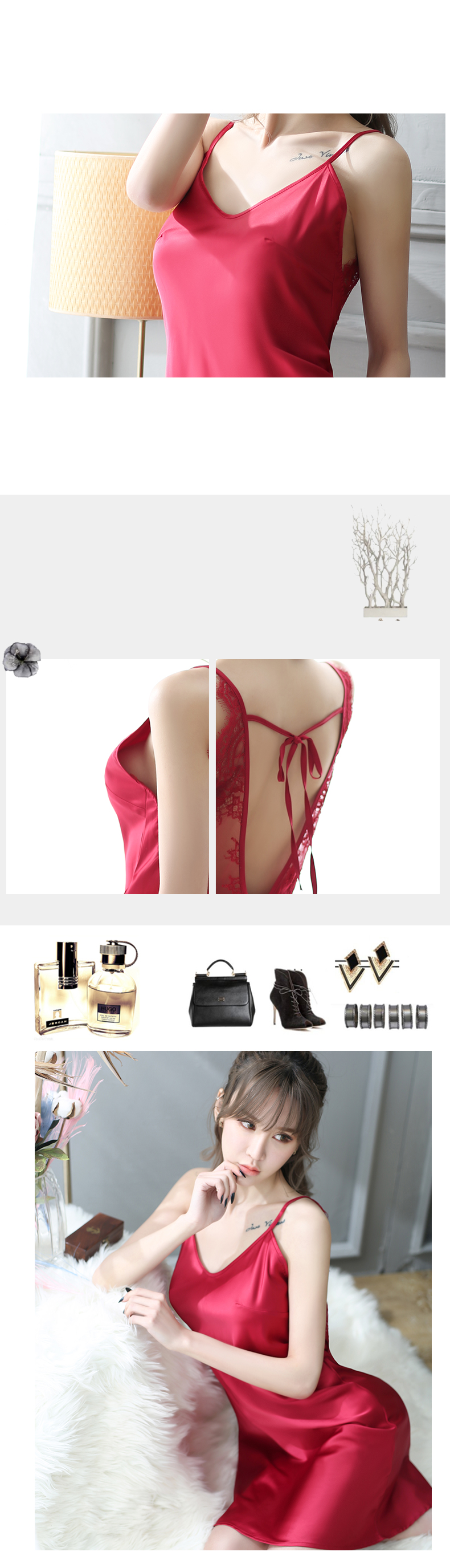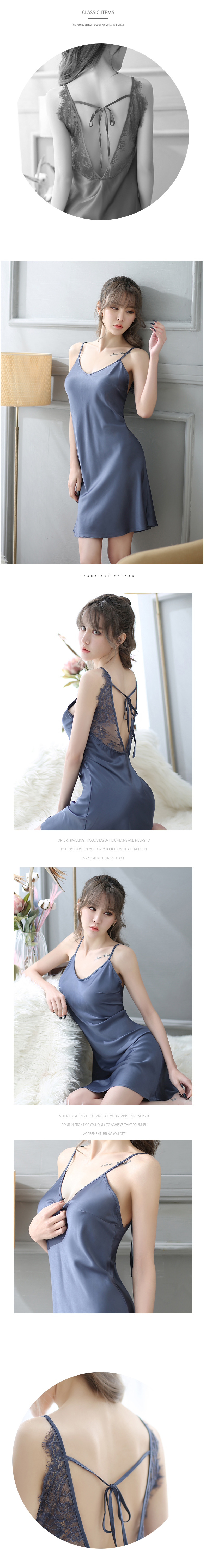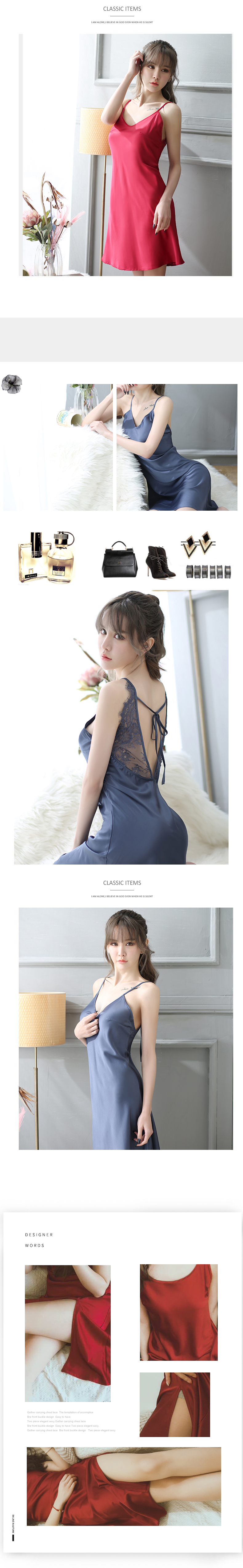 - 蕾絲高叉腰身突顯優美身形 露背貼身垂墜
