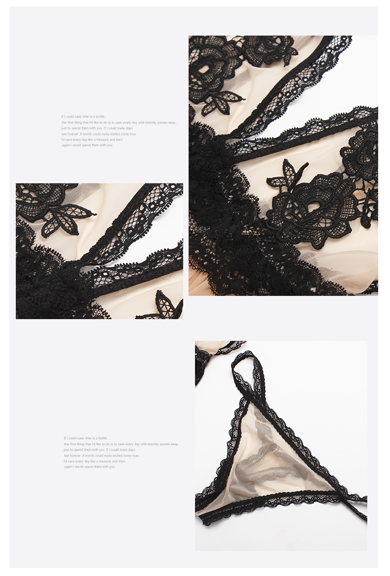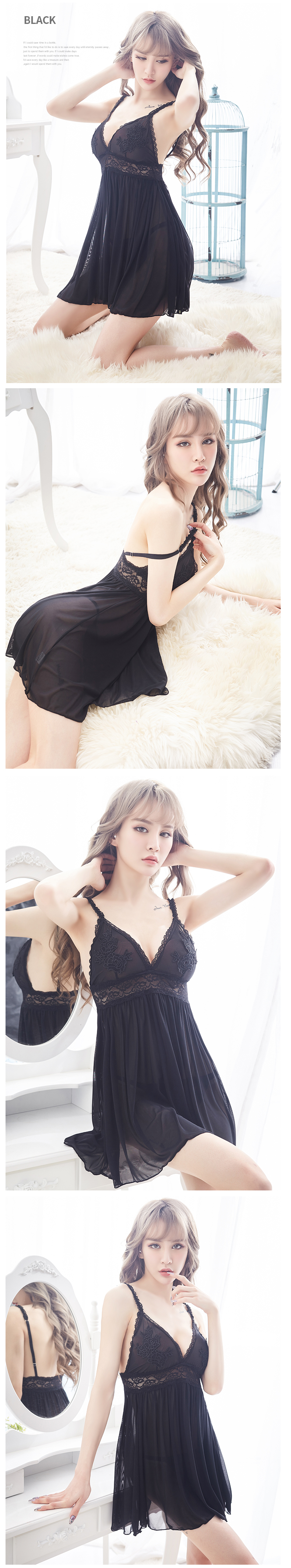 - 低胸誘惑黑色花邊蕾絲 纖細優雅性感