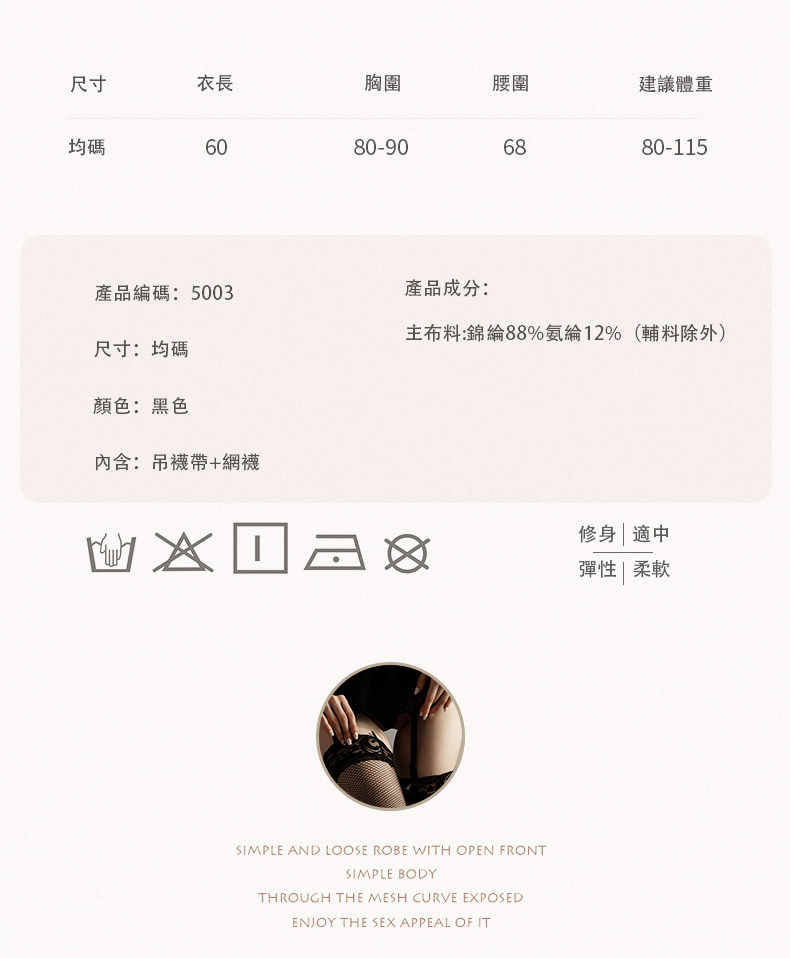 材質聚酯纖維、錦綸、氨綸、蕾絲