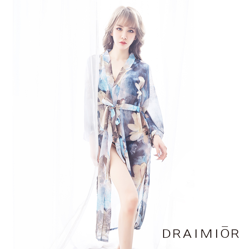 - 靈動飄逸 暗香浮動 印花雪紡薄紗睡衣