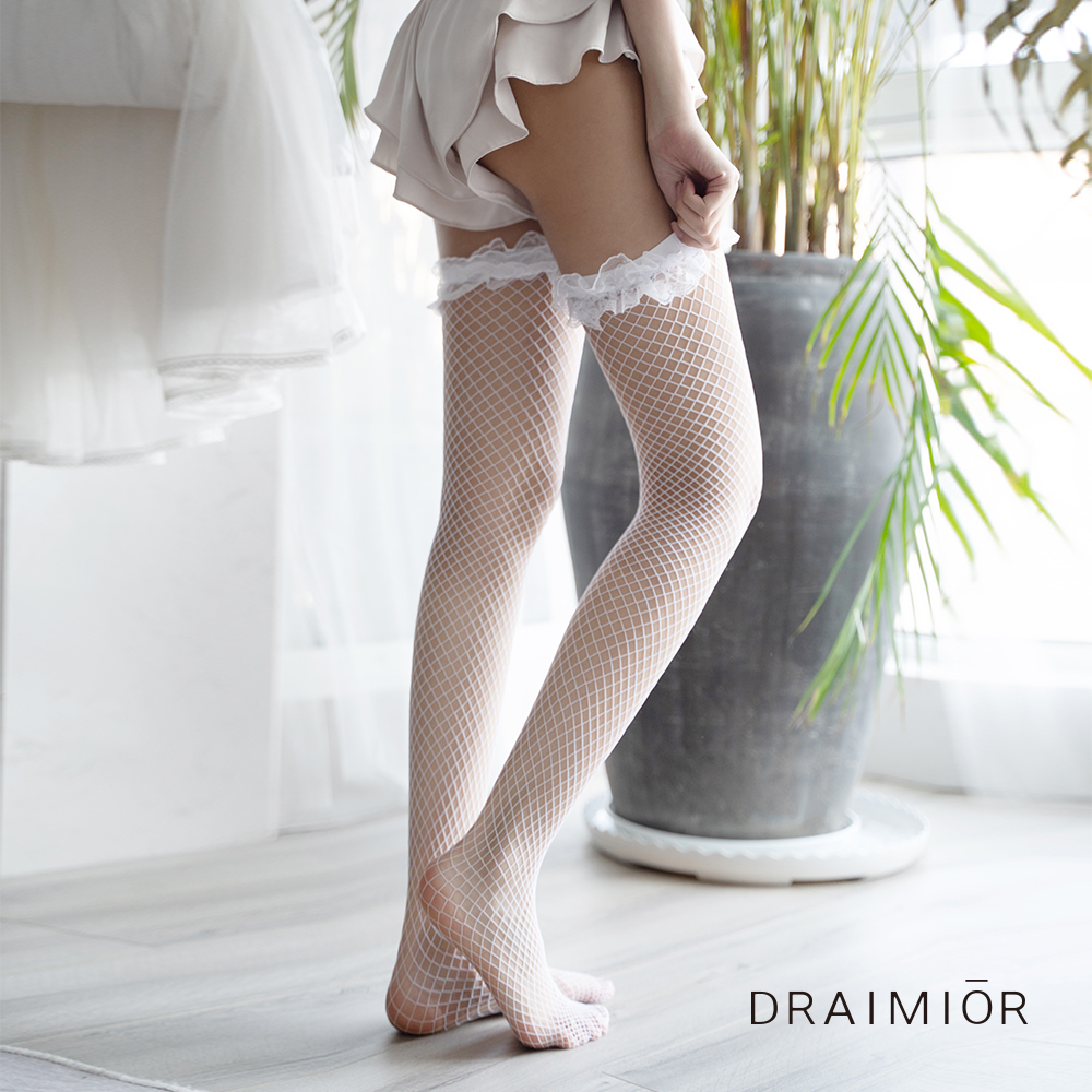 久慕雅黛 木耳花邊蕾絲性感大腿網襪。白色