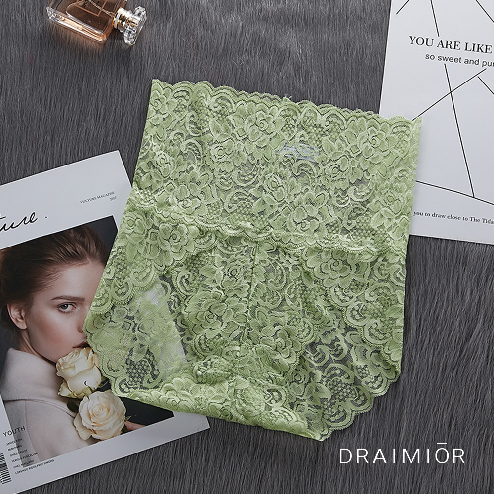 久慕雅黛 柔軟彈力舒適高腰蕾絲鏤空內褲。綠色