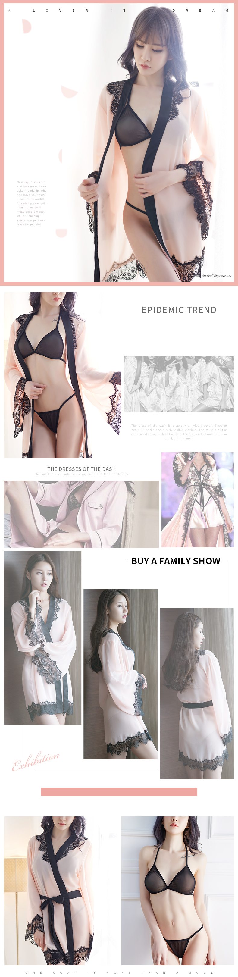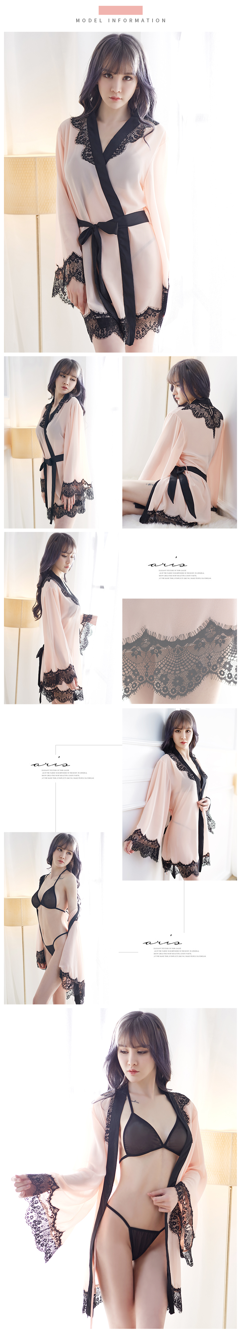 - 黑色睫毛蕾絲睡袍 內搭夢幻透紗熱辣比基尼
