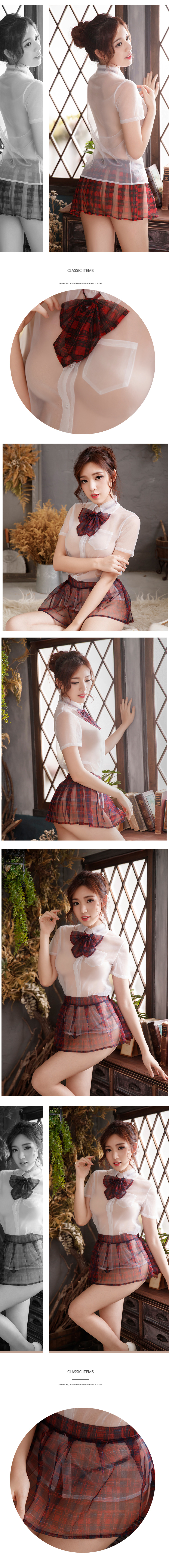 - 英倫風格紋輕透柔紗學生制服 流露青春氣息