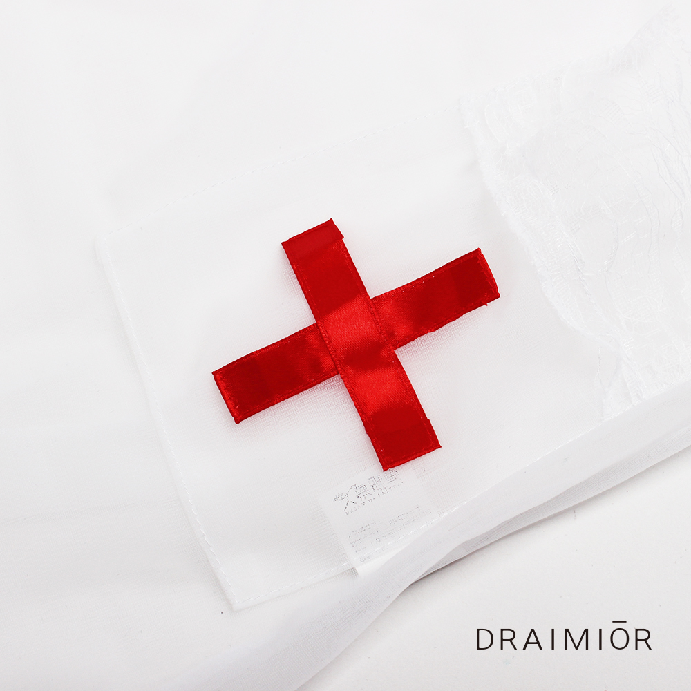 • 甜美蕾絲加白色透明柔紗與紅十字的搭配 充滿美麗幻想