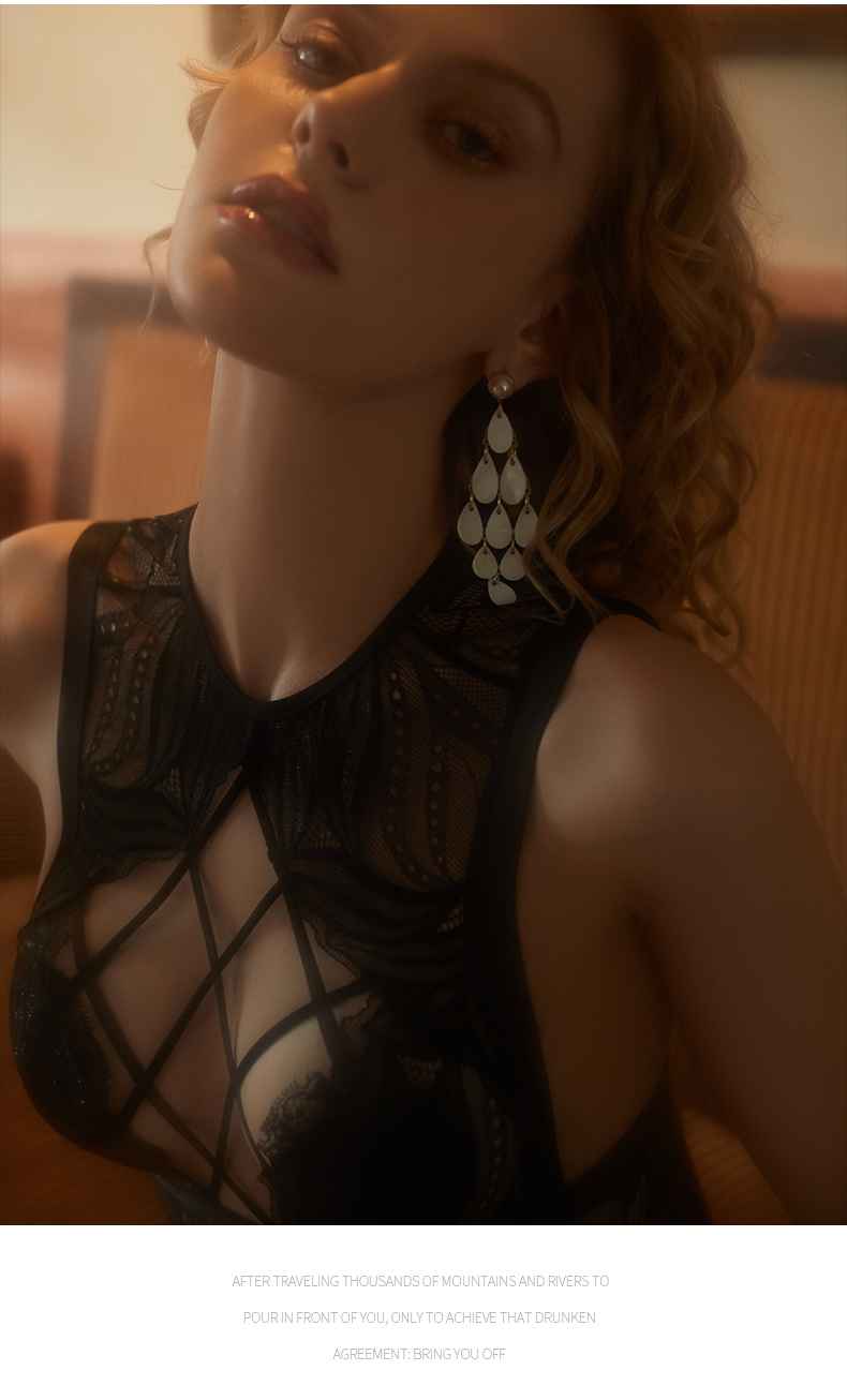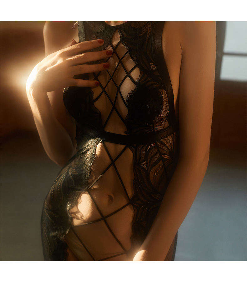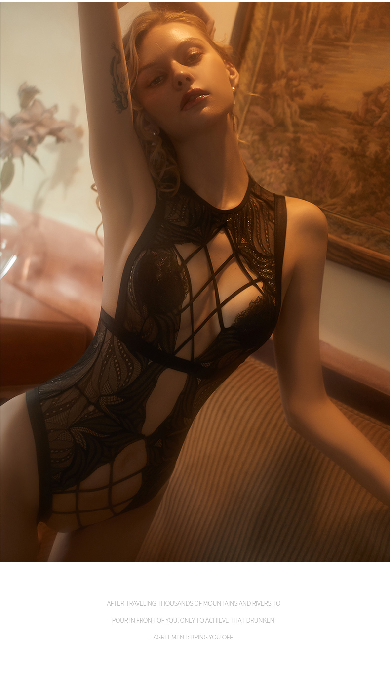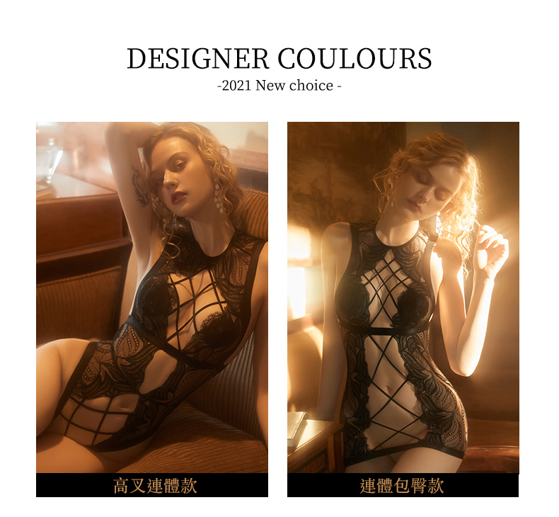 - 蕾絲連體系帶交叉 鏤空蕾絲的性感