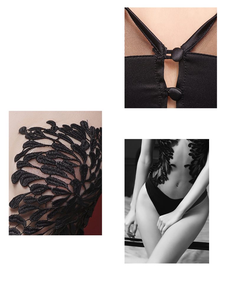 - 細膩浮雕般刺繡蕾絲 沿著雙峰及腰線蔓延