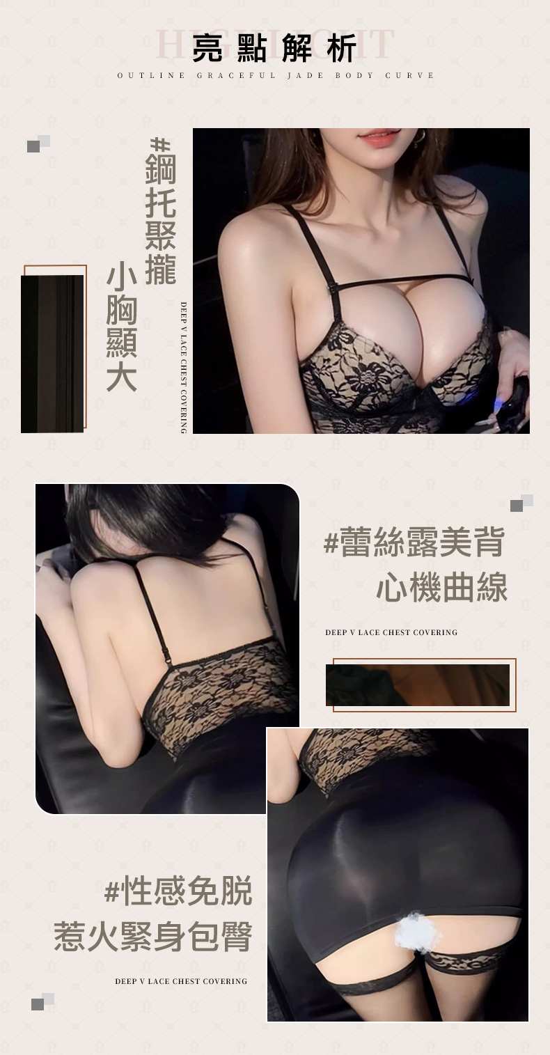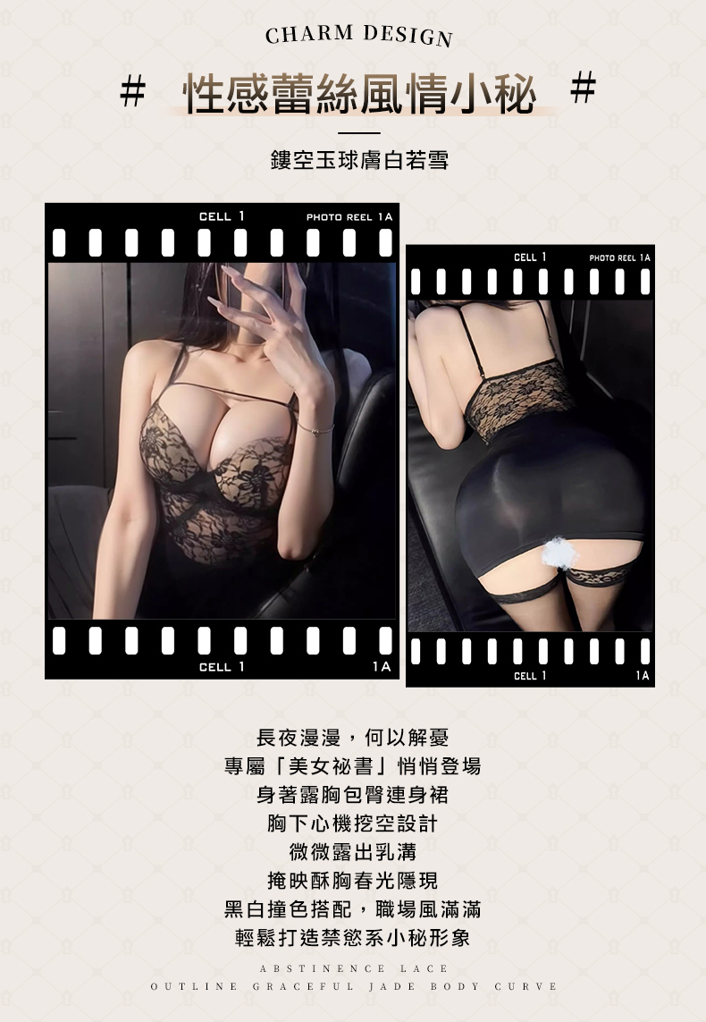 • 身著露胸包臀連身裙 胸下心機挖空設計 微微露出乳溝
