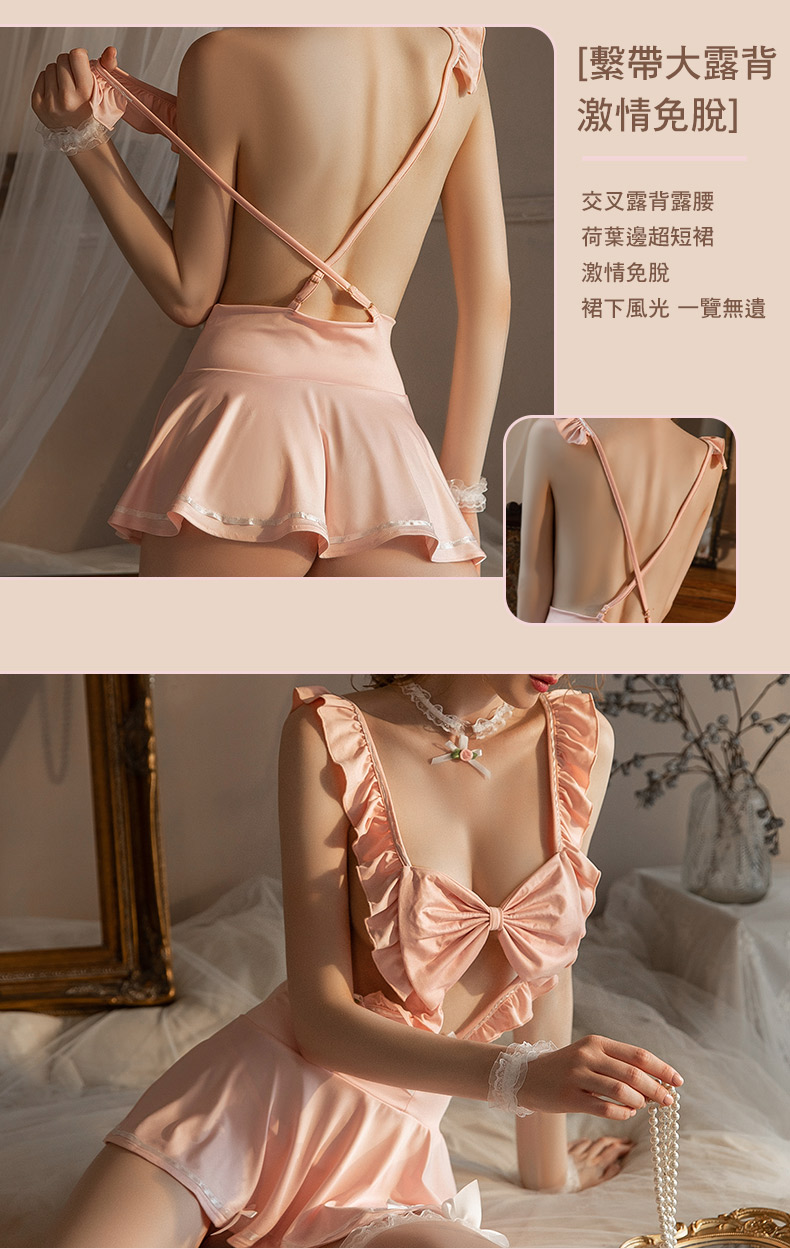 - 荷葉花邊肩帶波浪超短裙 華麗又性感