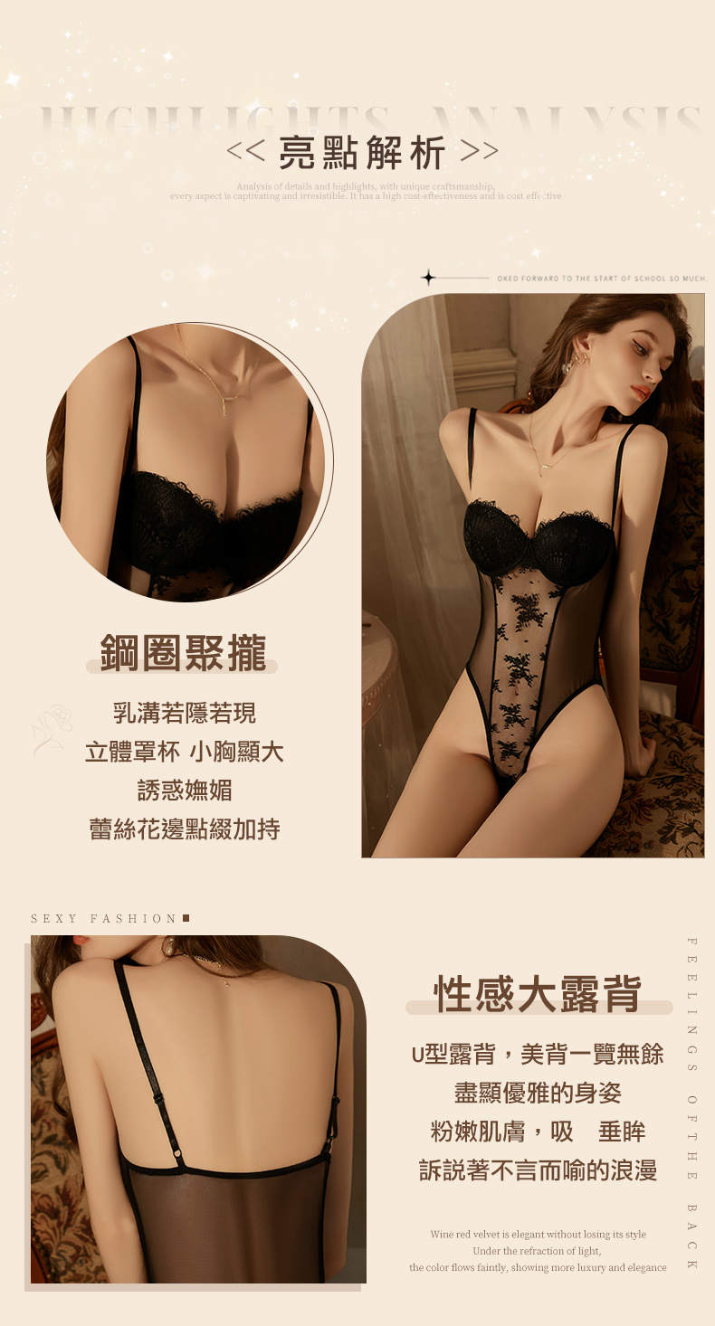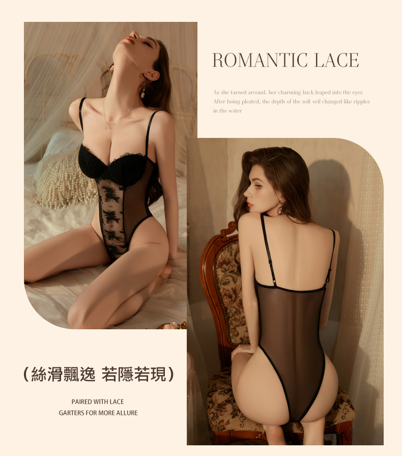 - 浪漫法式極簡時尚優雅性感 蕾絲束身連體衣