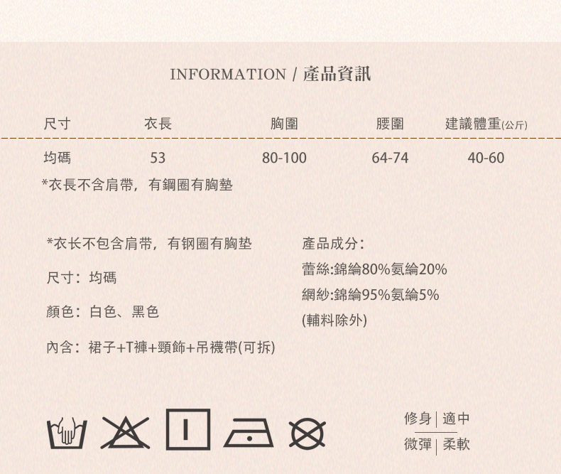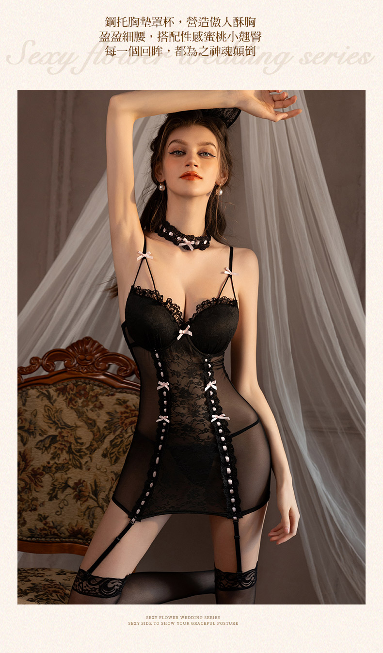 內容物連身裙+T褲+頸飾+吊襪帶(可拆式)