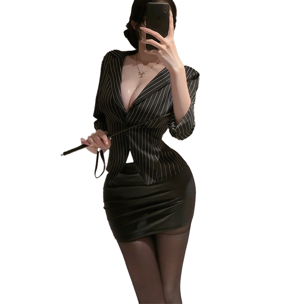 - 柔情女上司性感OL 連身襯衣皮裙套裝 誘惑迷人