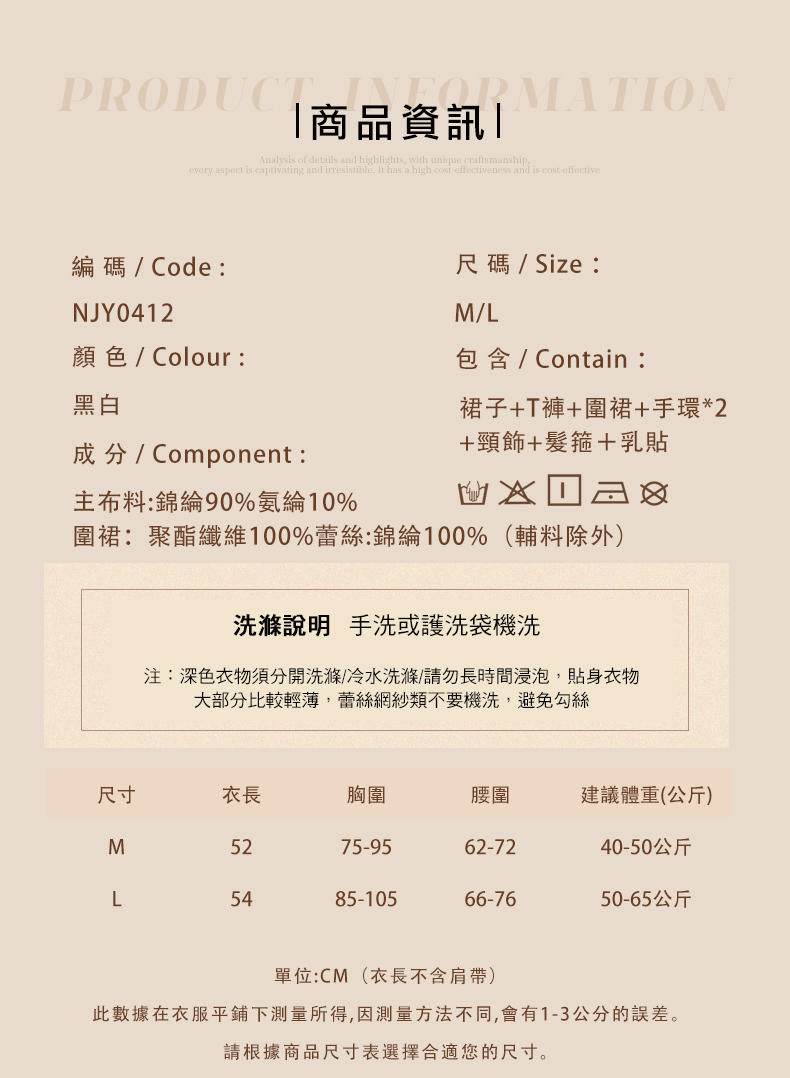裙子+T褲+圍裙+髮箍+頸飾+手環x2+乳貼