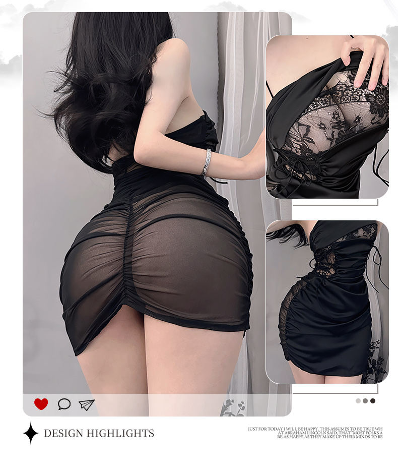 - 蕾絲邊包臀短裙 渾圓翹臀 不經意的抬腿動作