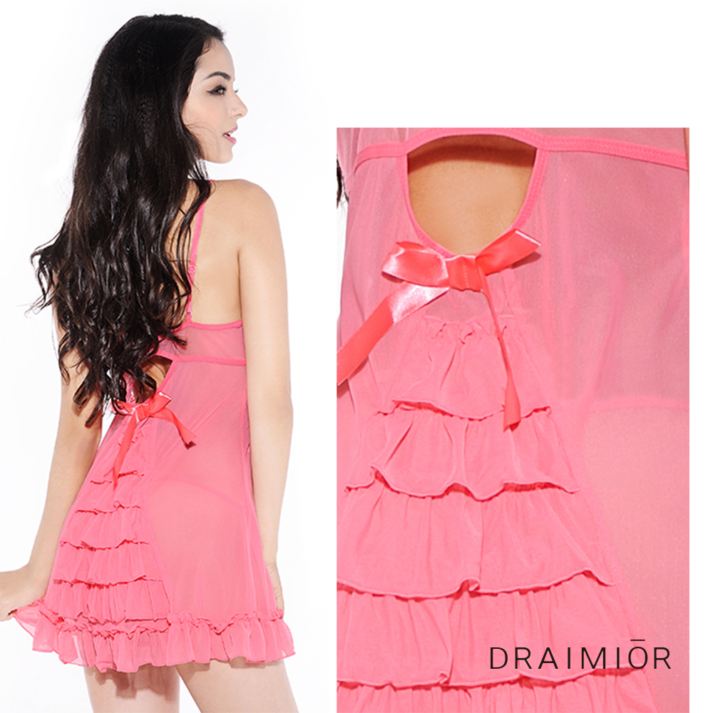 - 巧妙的深V透視蕾絲的設計感