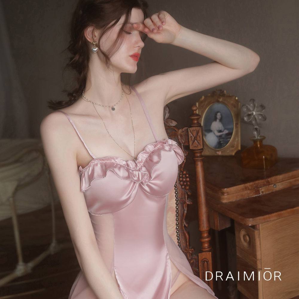 - 琉光緞面搭配半透柔紗 純欲睡裙性感加分