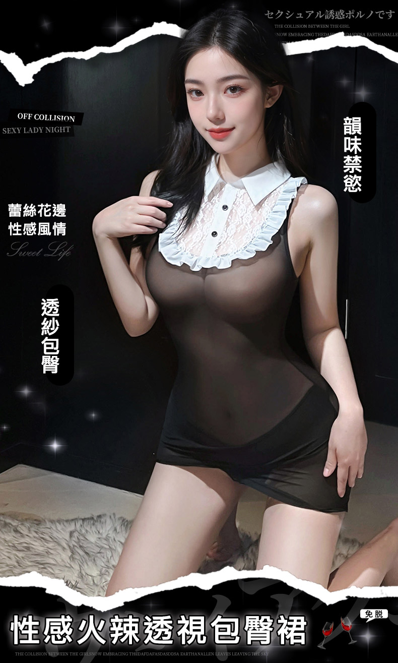 - 火辣秘書性感蕾絲透紗包臀裙 緊緊包裹著貼合曲線