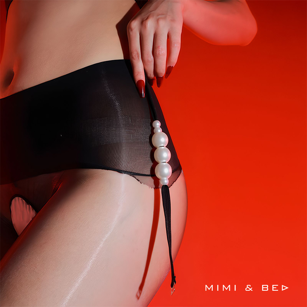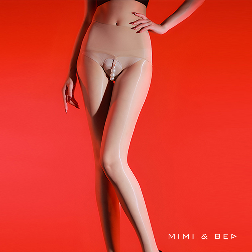 - 絲滑3D極光亮按摩珍珠開襠絲襪 可拆卸3大顆珍珠設計
