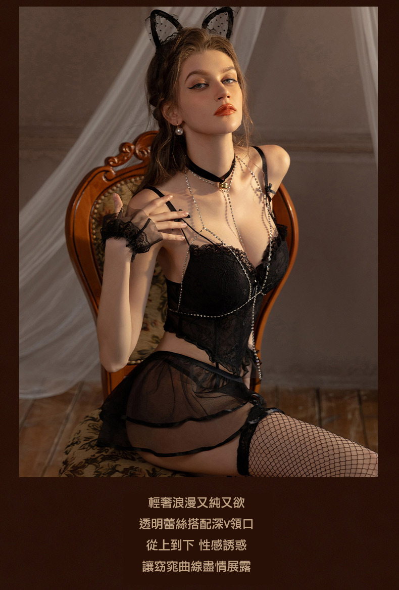 - 性感透紗蕾絲雙層裙擺 華麗驚艷視覺
