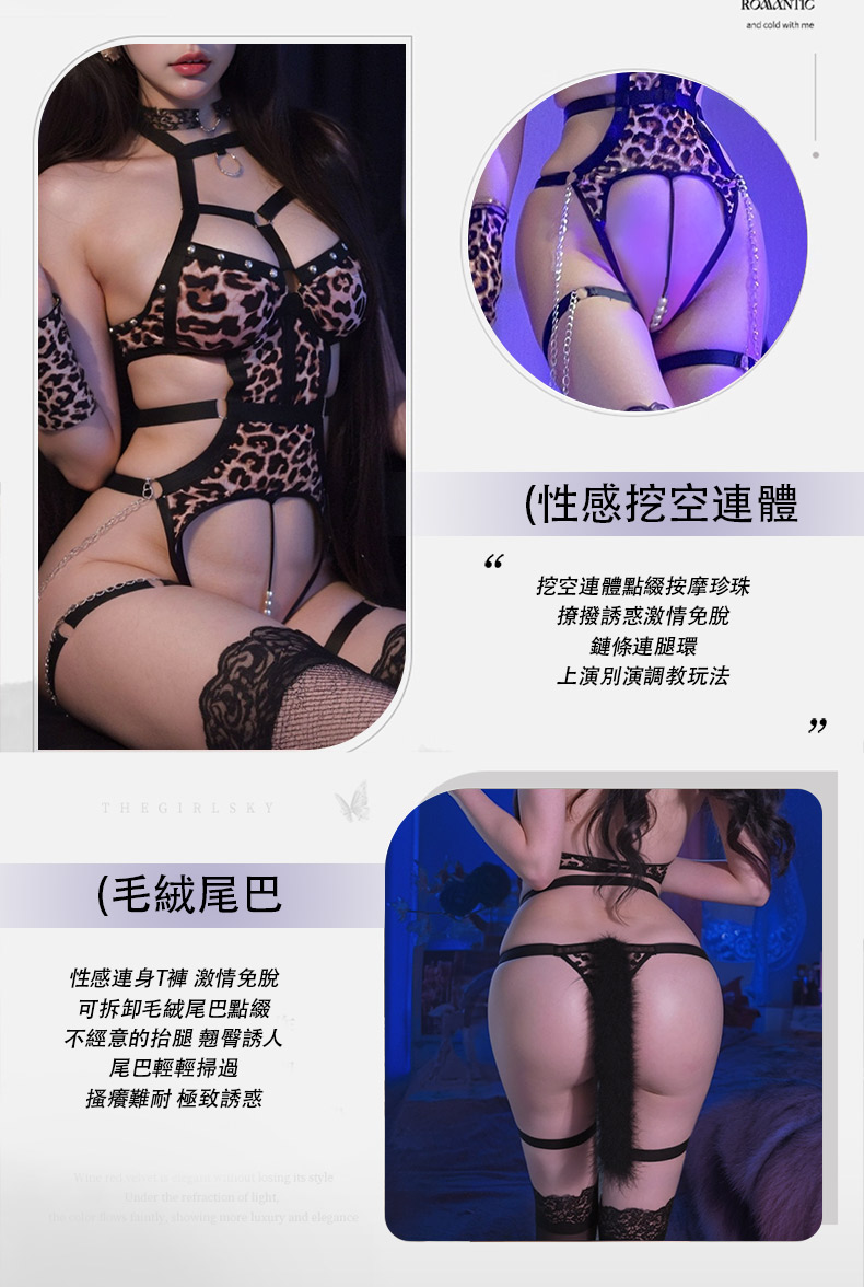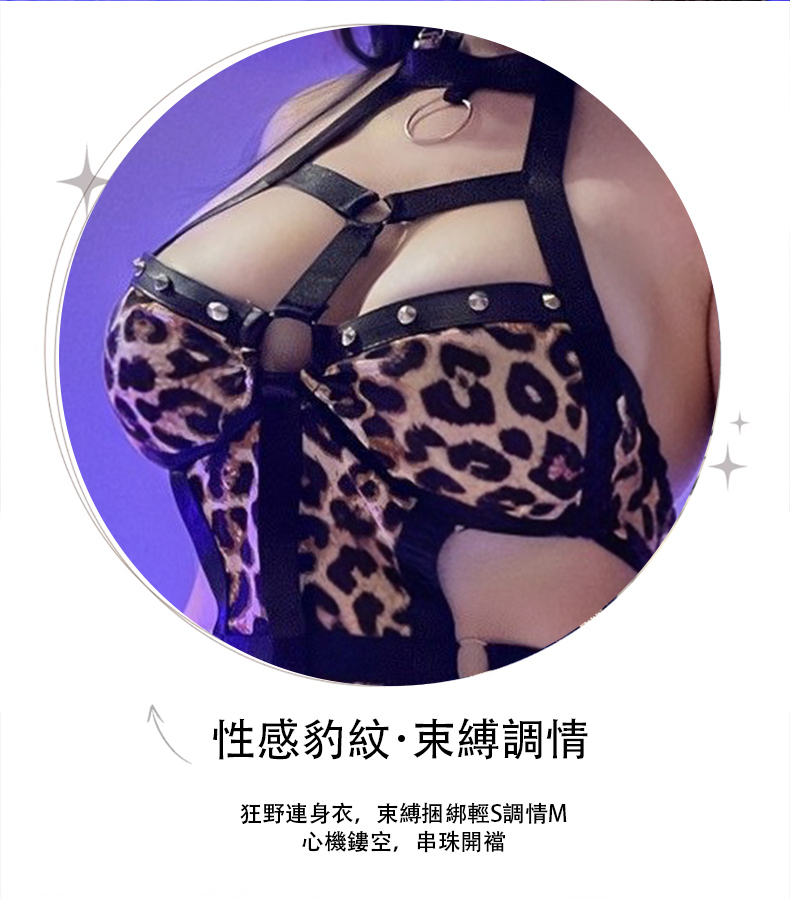 - 狂野豹紋輕SM綑綁挖空按摩珠串惹火連體衣
