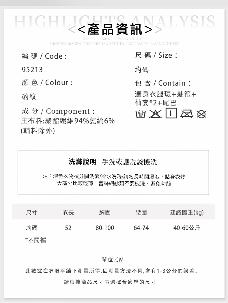 內容物連身衣腿環+髮箍+袖套*2+ 尾巴
