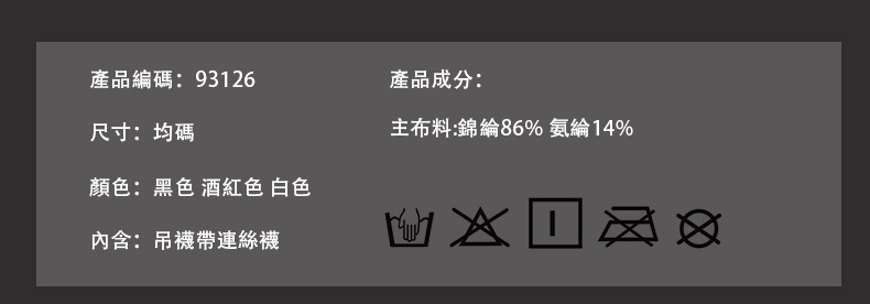 材質聚酯纖維、錦綸、氨綸、蕾絲