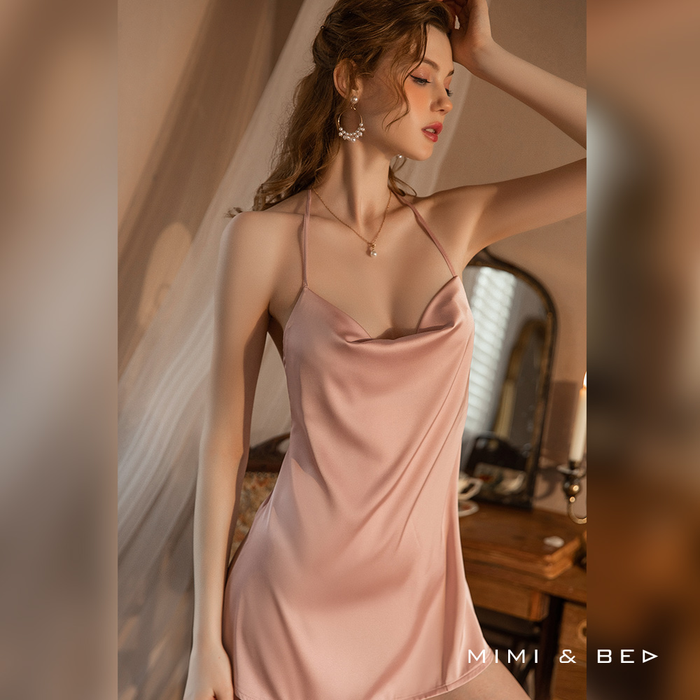 - 光感緞面絲滑垂順 美背線條點綴溫柔珠鍊