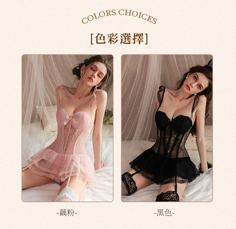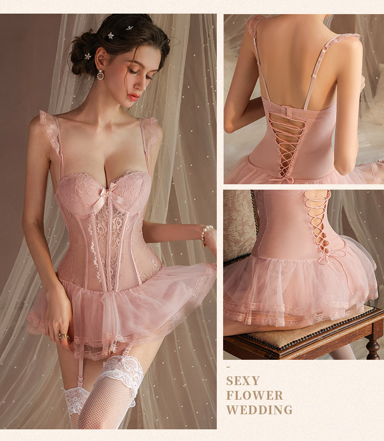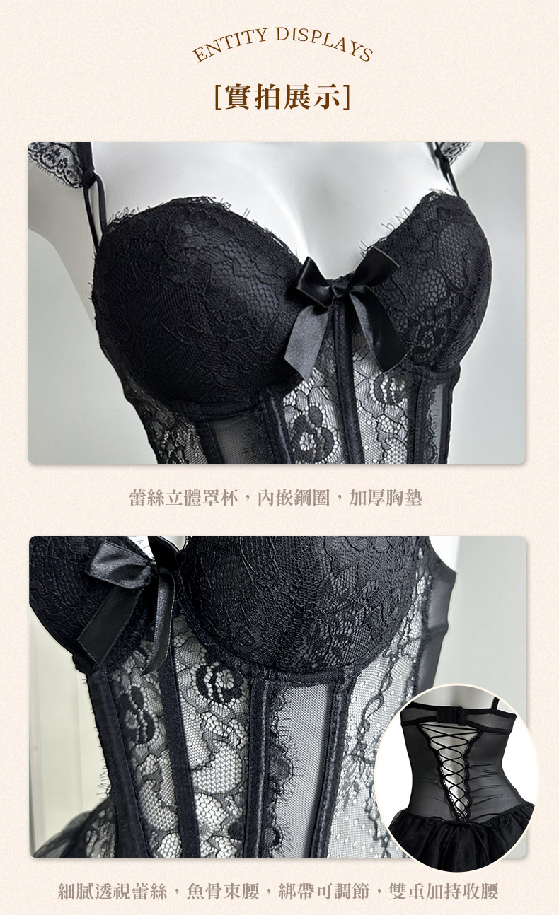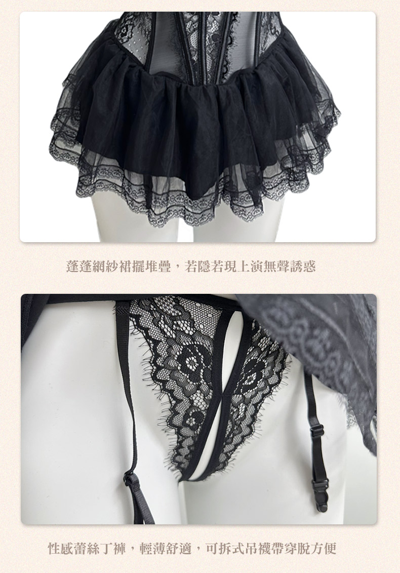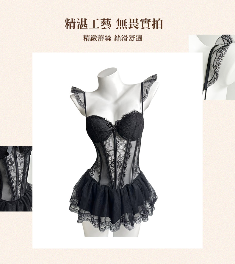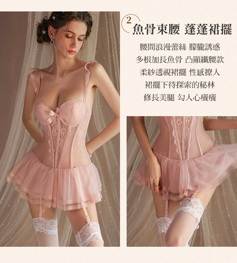 - 甜美蕾絲蓬蓬裙襬束身馬甲包裹著曼妙身材
