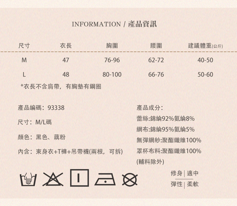 內容物束身衣+T褲+吊襪帶x4(可拆式)