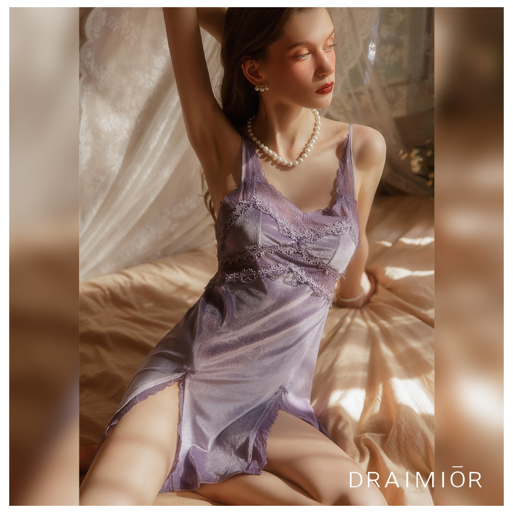 - 蕾絲花邊妝點縈繞 雙邊開叉裙擺性感驚艷