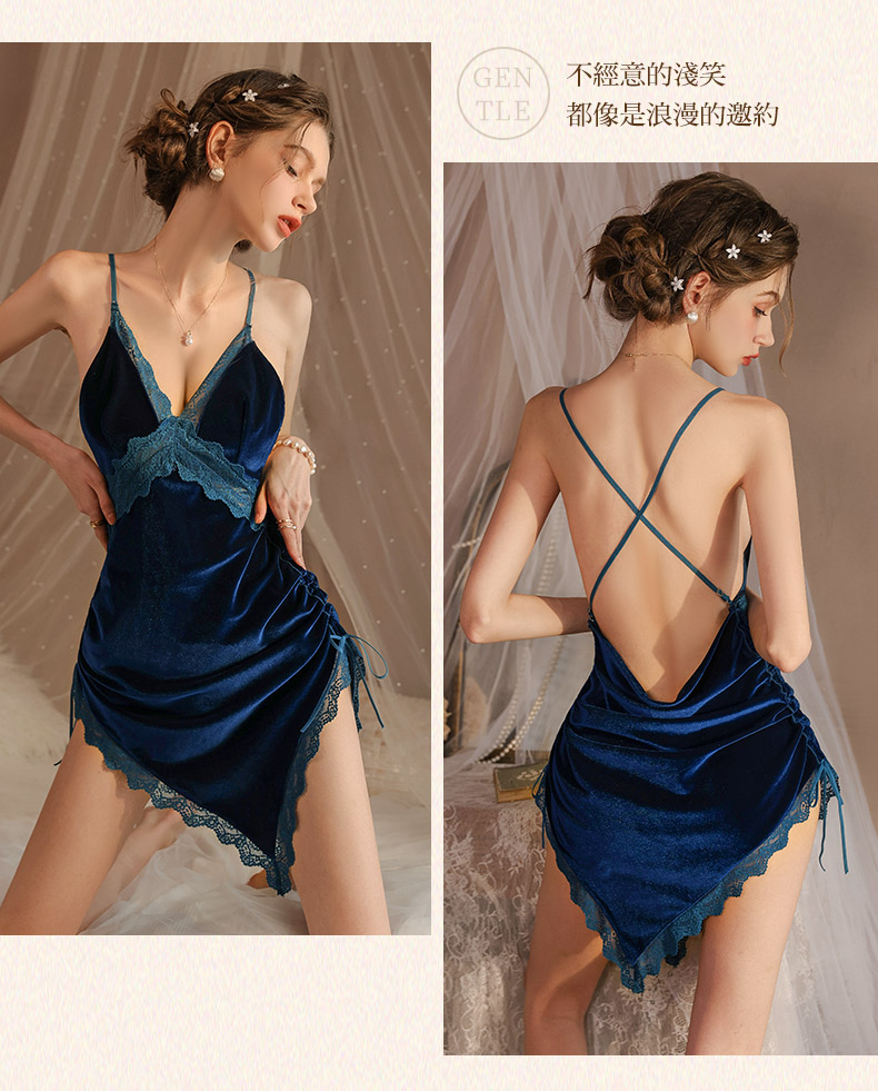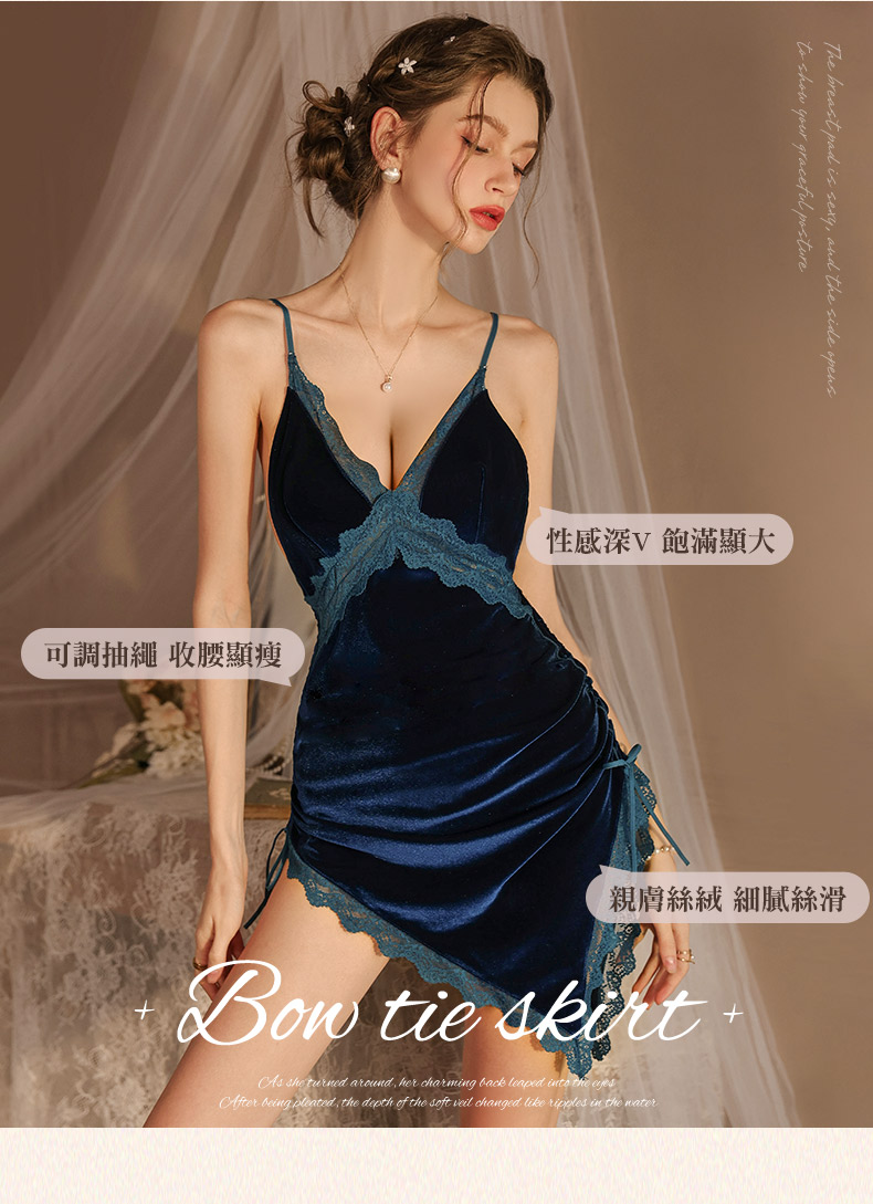- 斜尾裙擺曲線迷人 金絲絨觸感柔軟絲滑柔順