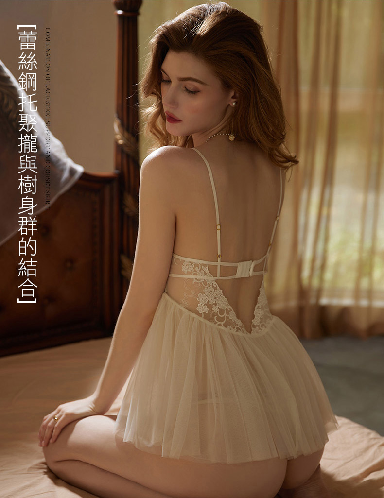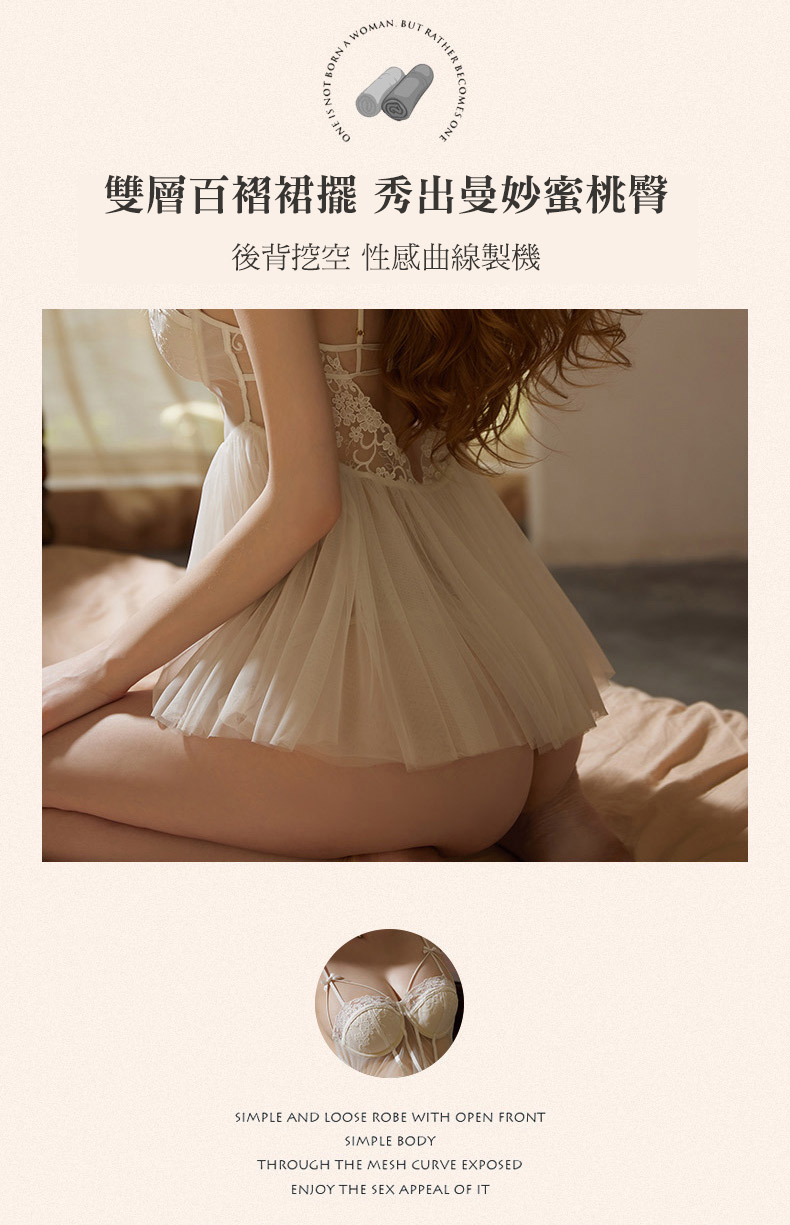 - 深U型露美背 百褶清透雪紗 飄逸靈動裙擺