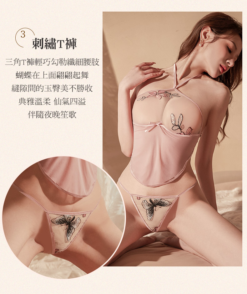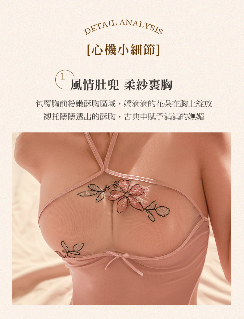 - 優雅花朵蝴蝶刺繡肚兜睡衣 古典的唯美