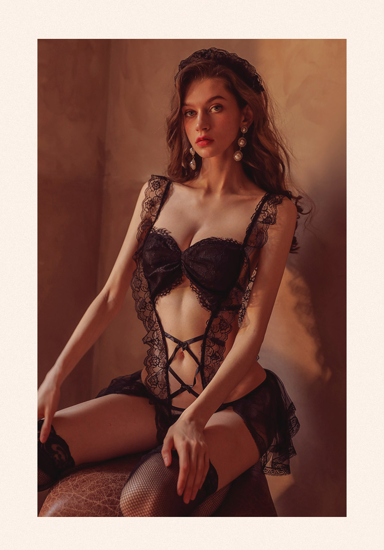 - 性感蕾絲花邊綁帶 甜蜜俏皮的蓬蓬裙