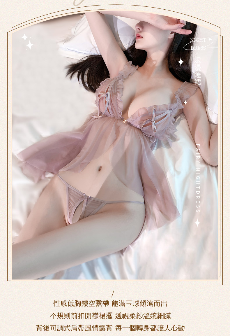 - 繫帶露胸 輕薄柔紗美人的仙氣
