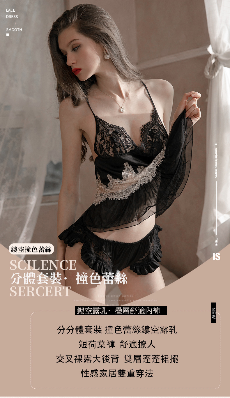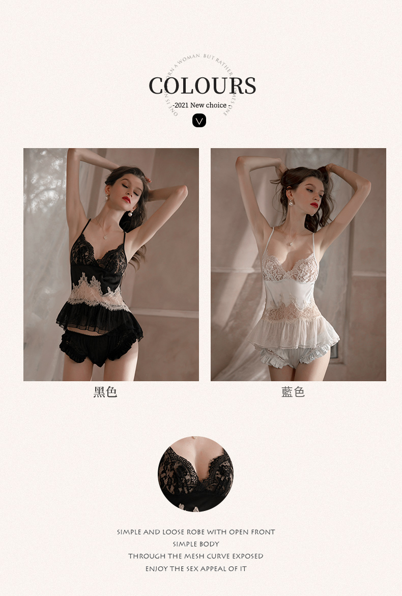 - 蕾絲花邊小短褲睡衣 性感露背柔美腰身