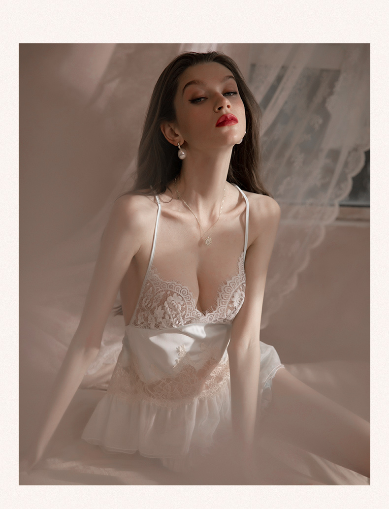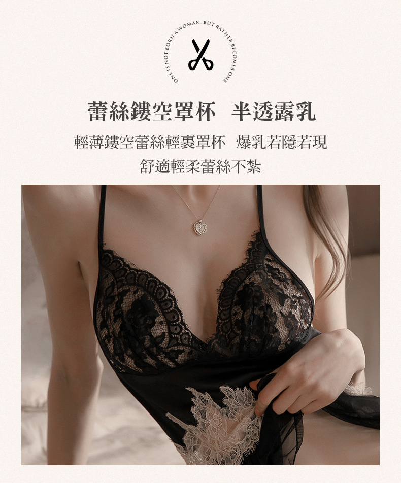 - 胸前柔軟鏤空蕾絲拼接 氣質優雅柔美大氣