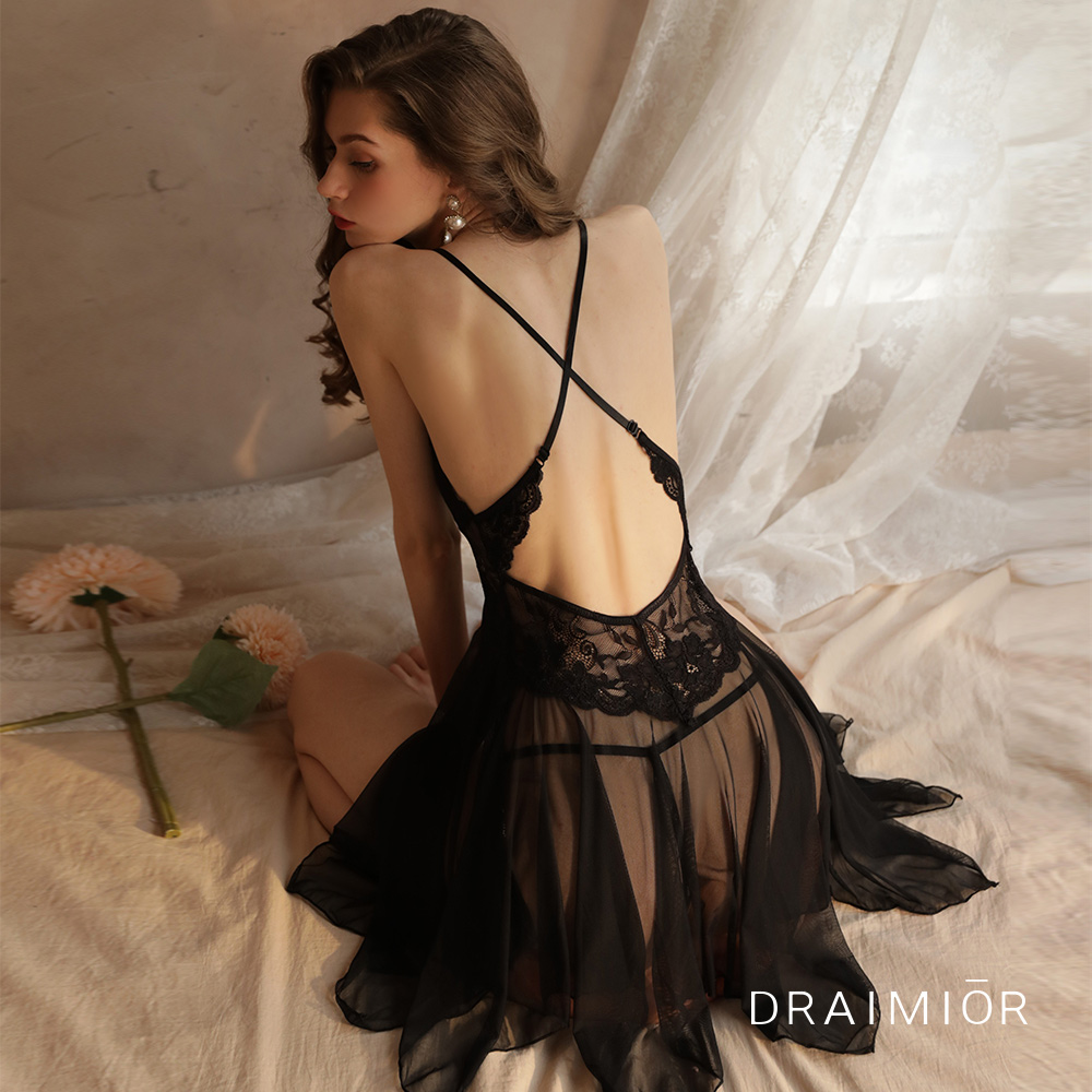 - 胸前精緻提花蕾絲 輕薄柔紗美人的仙氣