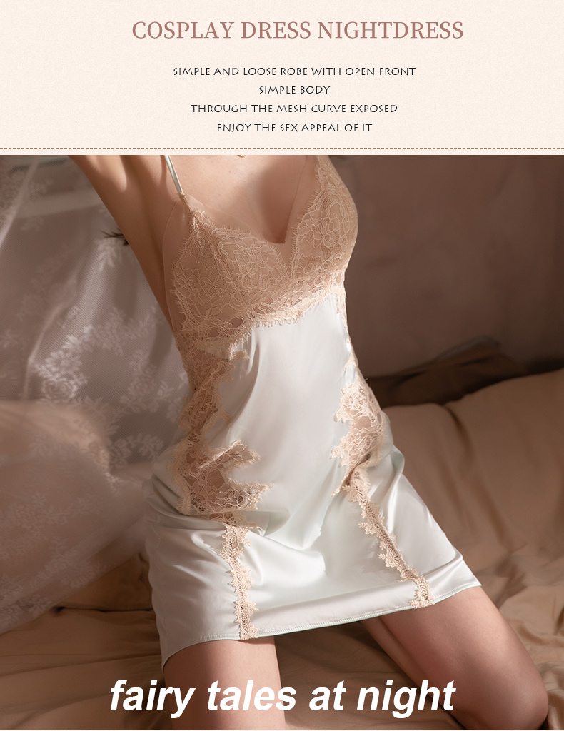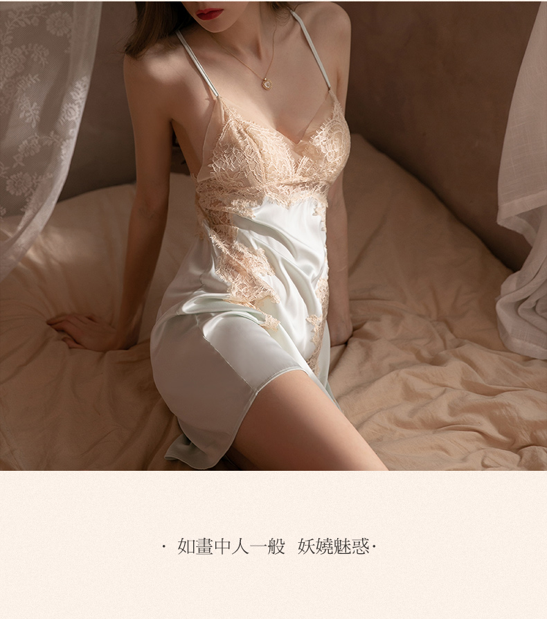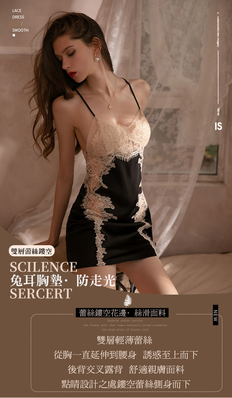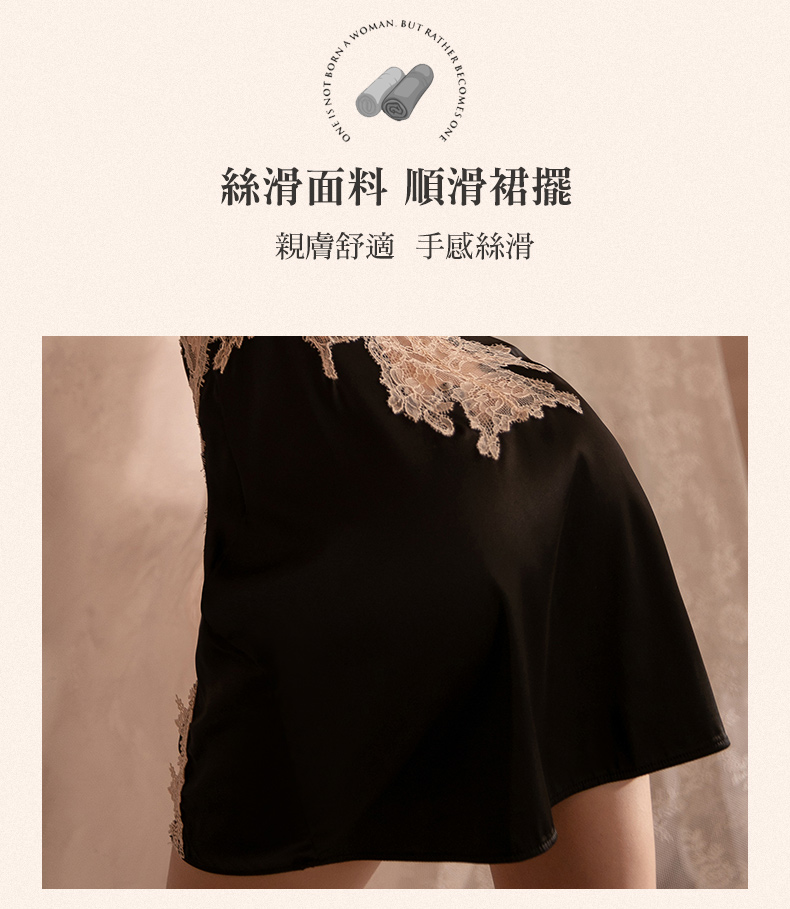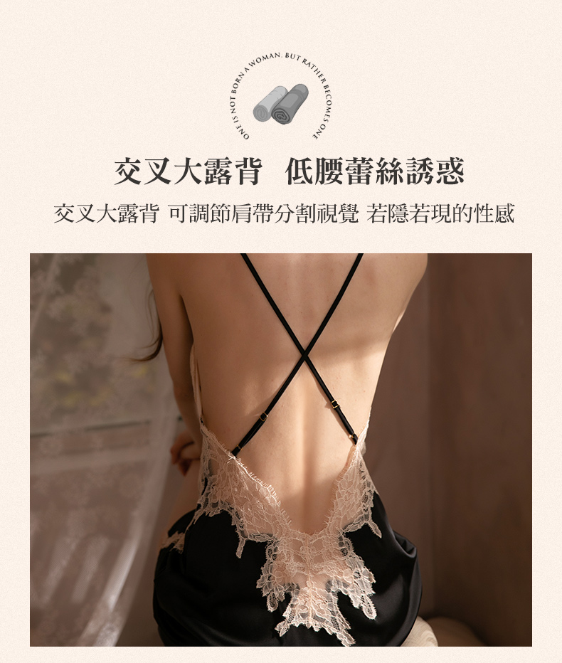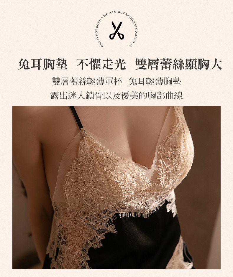 - 胸前層疊的花紋蕾絲 延伸到腰身鏤空蕾絲