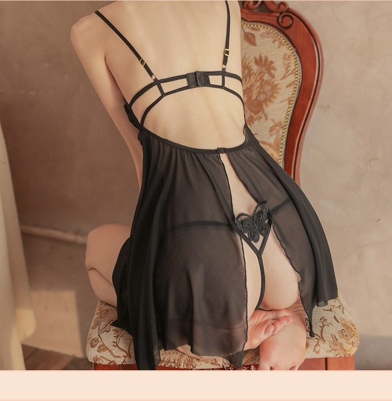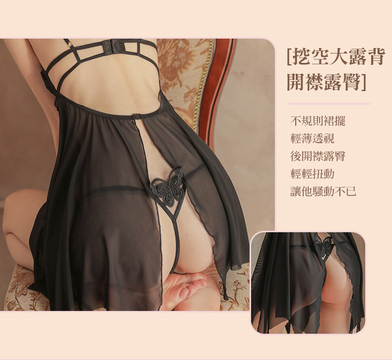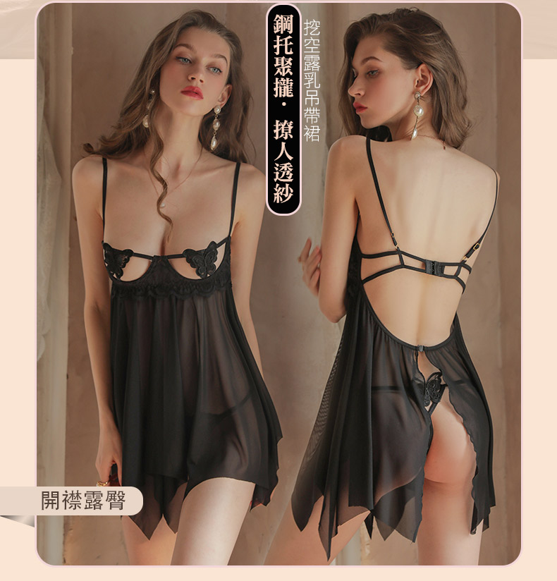 - 美胸性感三點挖空 美胸露乳柔紗睡裙