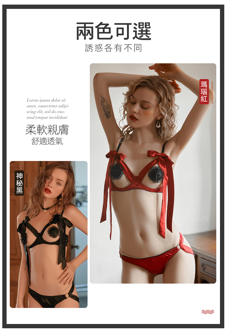 - 絲帶捆綁 柔軟的絲帶蝴蝶結綁帶內衣