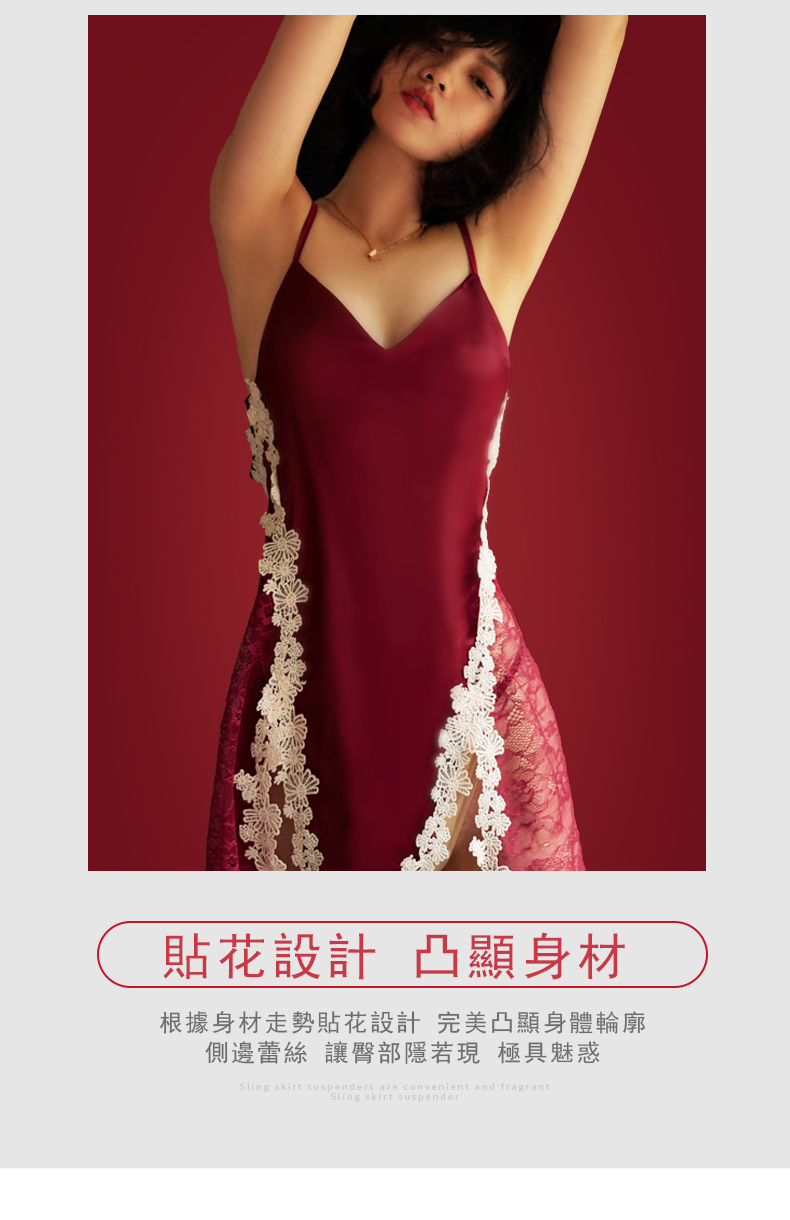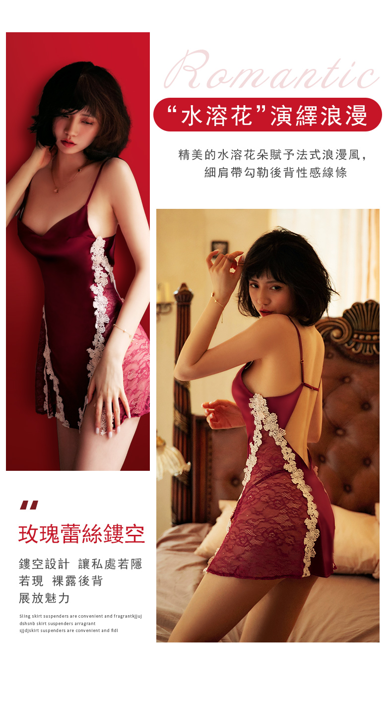 - 緞面觸感柔軟 裙擺絲滑柔順 典雅設計性感美麗