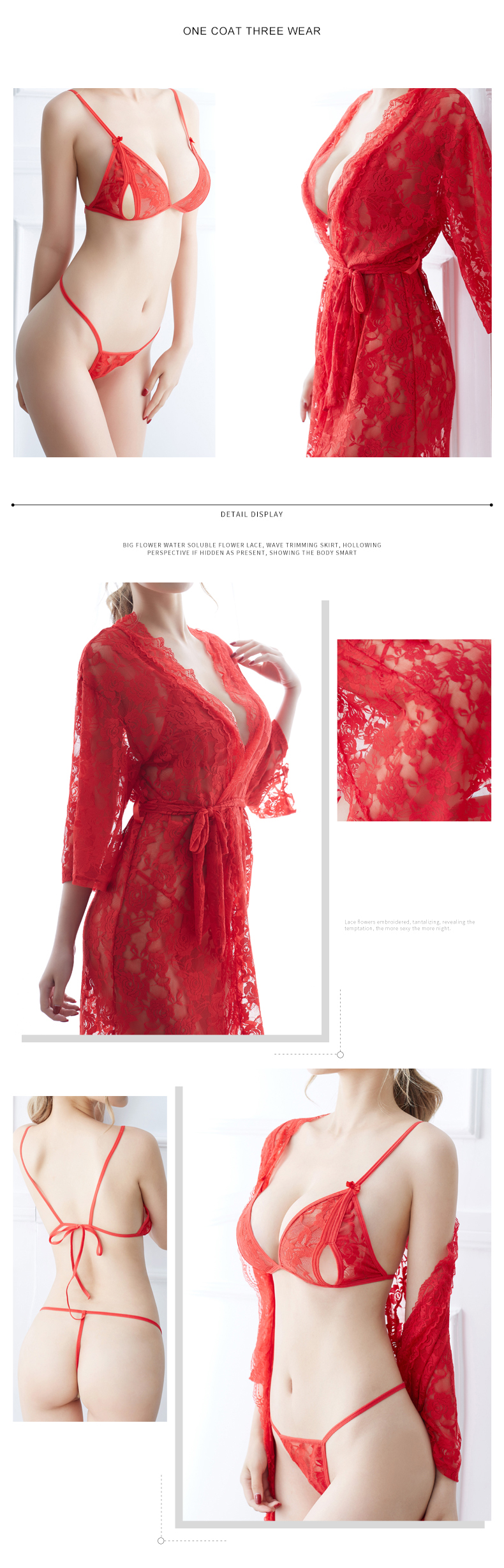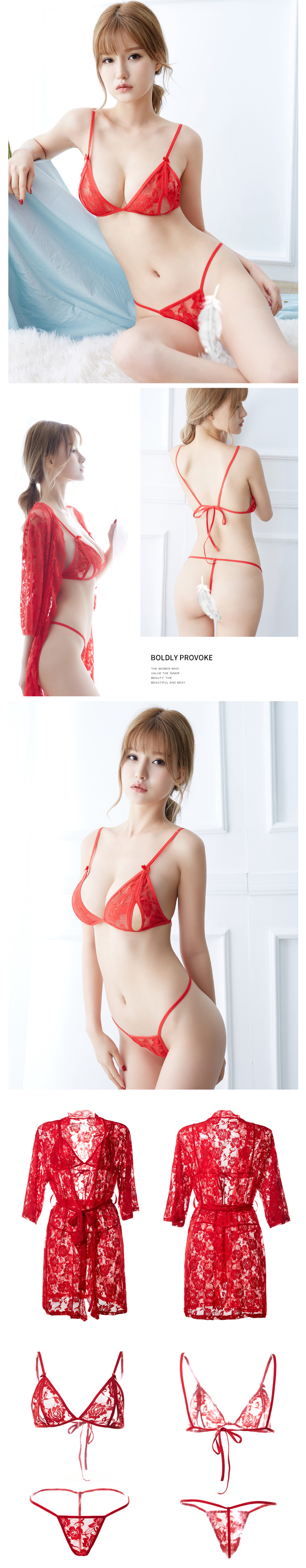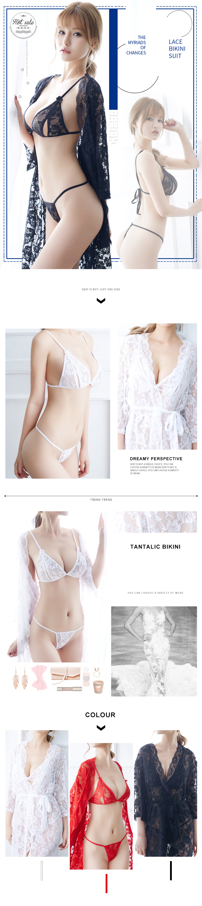 - 柔軟蕾絲輕薄外套 搭配花紋蕾絲比基尼