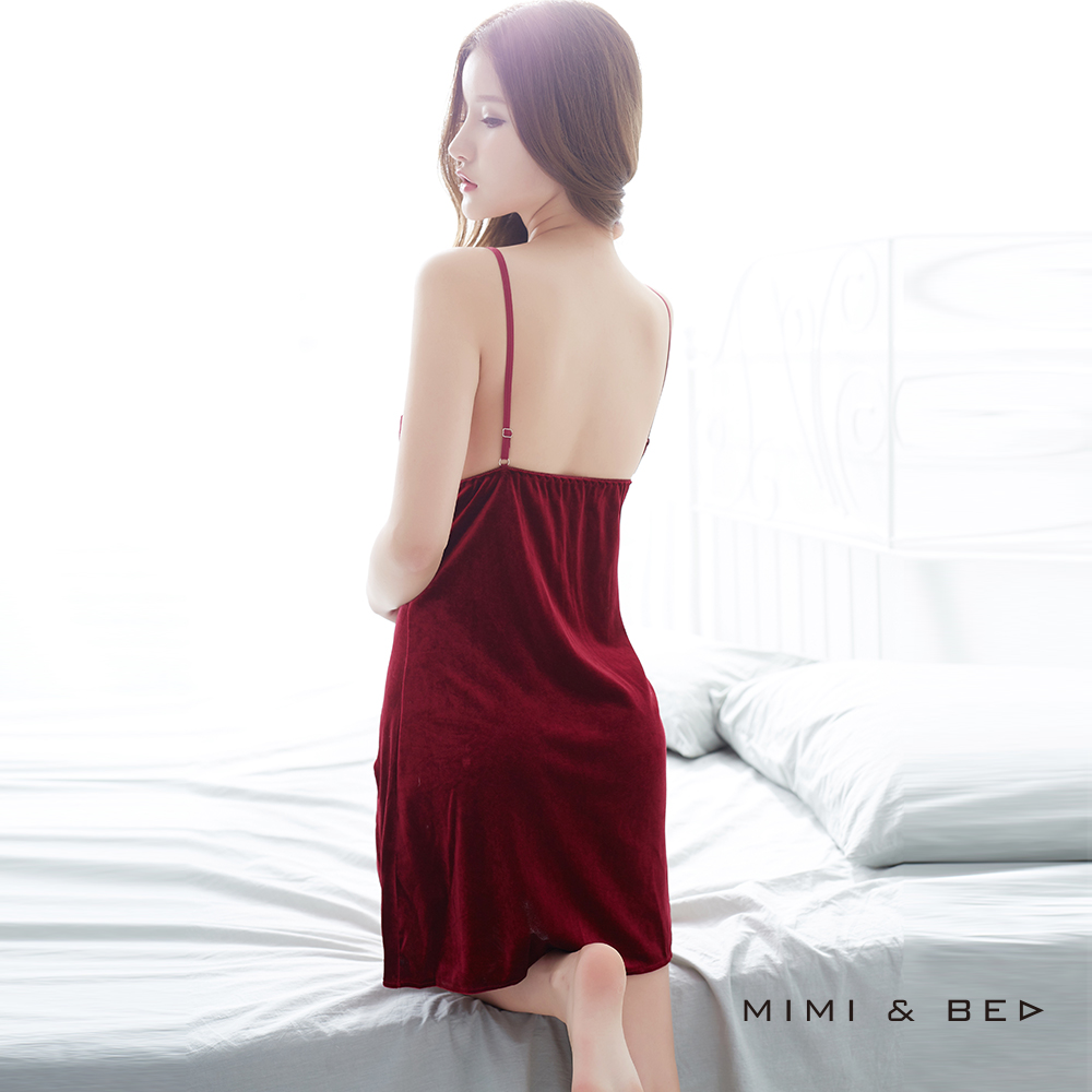 - 短裙開叉設計甜美俏麗 中和了絲絨的隆重成熟