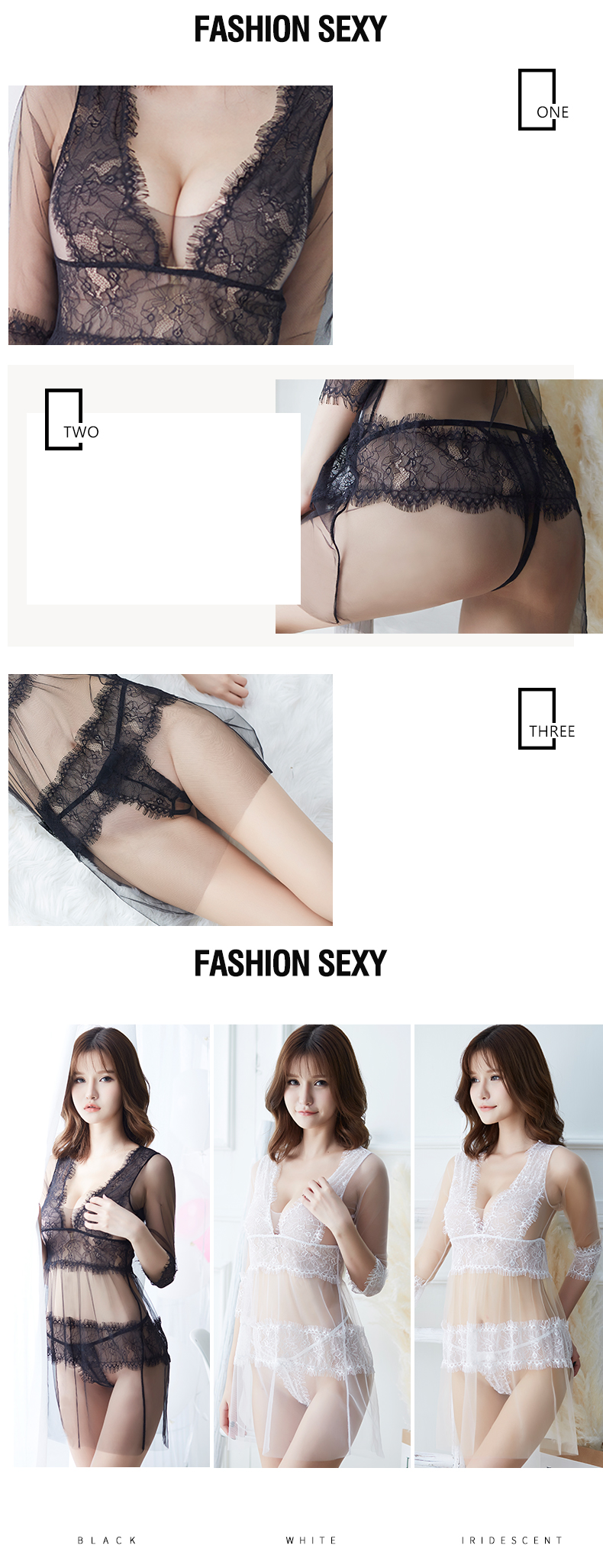 • 深V深溝的誘惑 絲滑蕾絲輕透薄紗誘人唯美