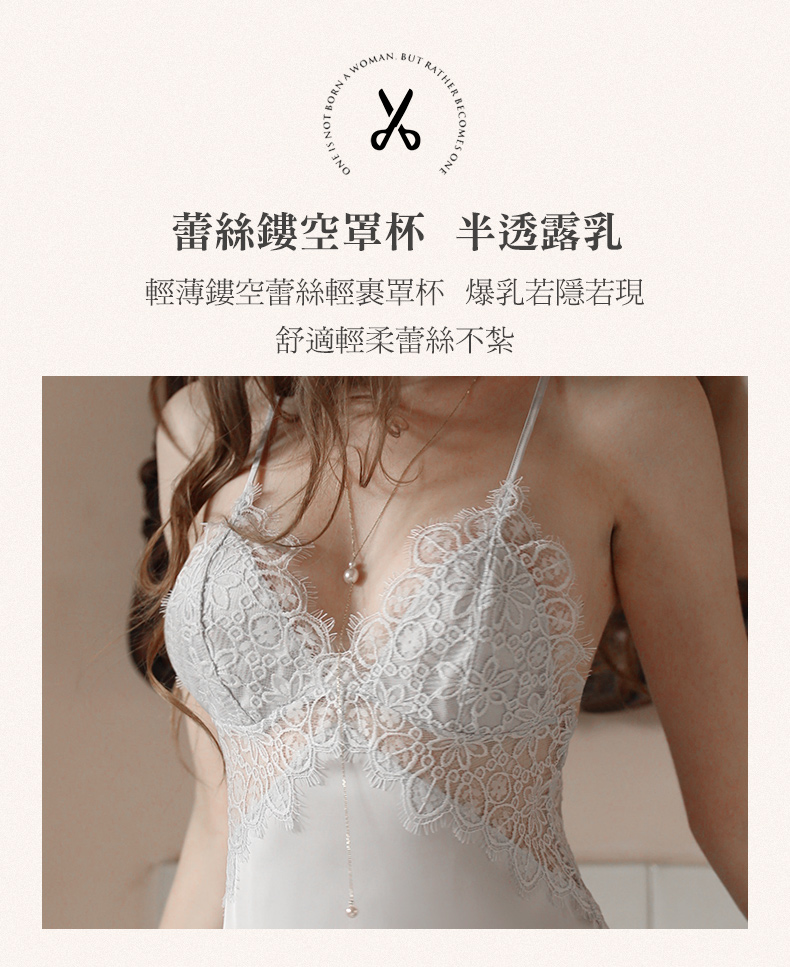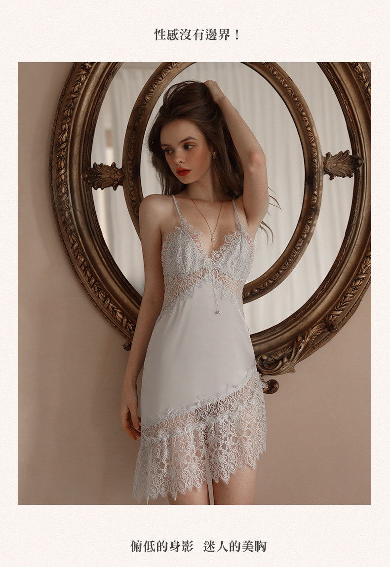 • 胸前層疊的花紋蕾絲 唯美風情綻放優雅氣質
